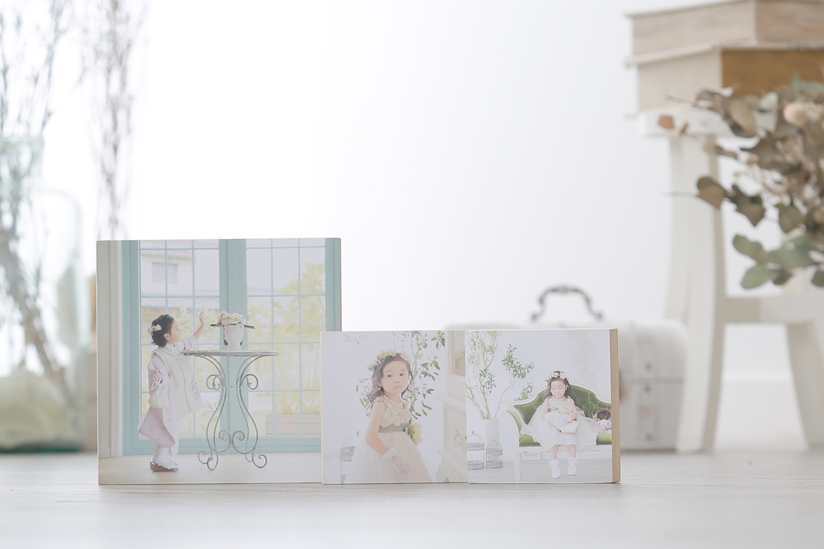 木製パネルの、ぬくもりあるフレーム。大1枚・小2枚の3枚セットなので飾ると華やかに、プレゼントにもおすすめです。